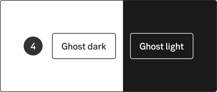 This button is mostly used on a coloured background or a photo. There is a light and a dark version to be visible on different backgrounds. On public web, the ghost button is used for primary actions more frequently to make a difference between buttons that links to a logged-in environment.