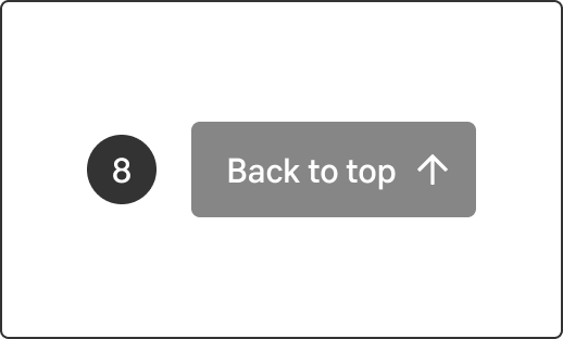 The up button is a site feature to help the visitor to easier get back to the top of the current page. The button will be visible once the visitor scrolls past a certain number of pixels (900 px by default) and starts an upward scroll motion. It then disappears again if the visitor clicks on it or starts to scroll downwards again.