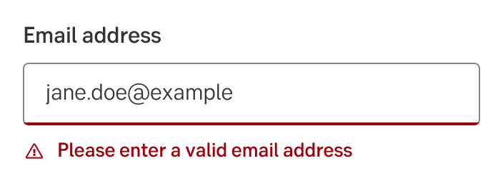 When input isn’t accepted, text fields can display an error message below the input line, with instructions on how to fix the error. Until the error is fixed, the error replaces the helper text.