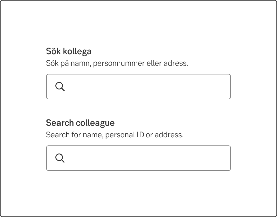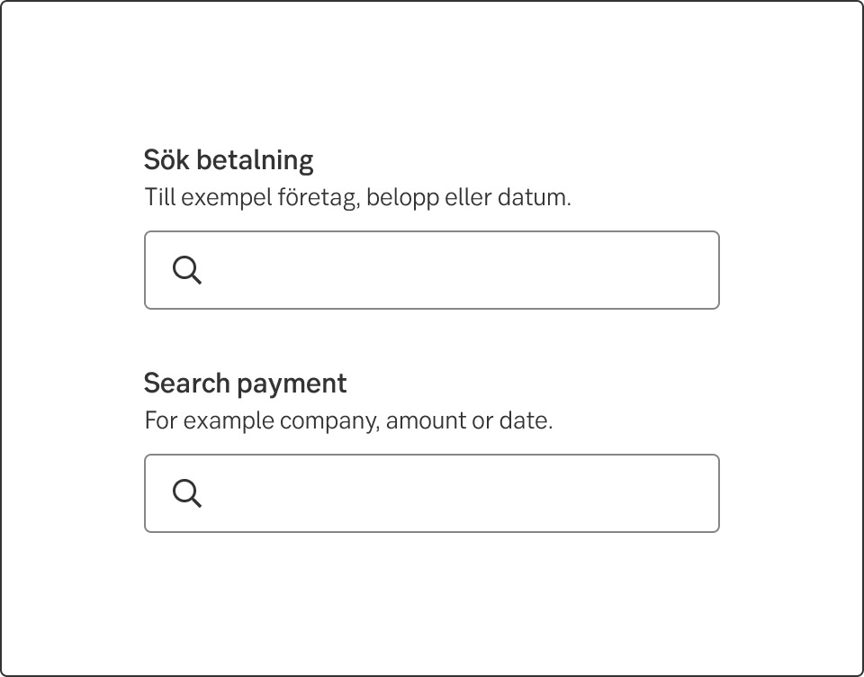 The search field should have a label that explains to the user what they can search for. To give the user instructions or examples on what to search for, we can use the label information. The label information should only be used if it adds extra value to the user, don't use it to repeat what the label already says.