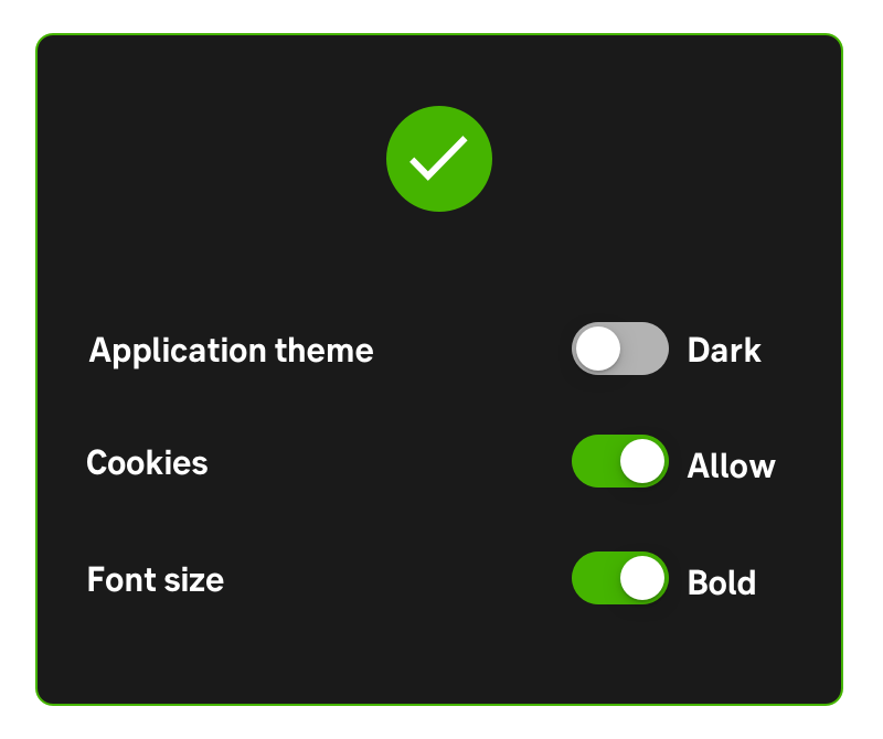 When the component is rendered, it should have the state of the preference it represents. When the slide toggle is clicked, the visual state and the preference/setting should change to the opposite immediately.