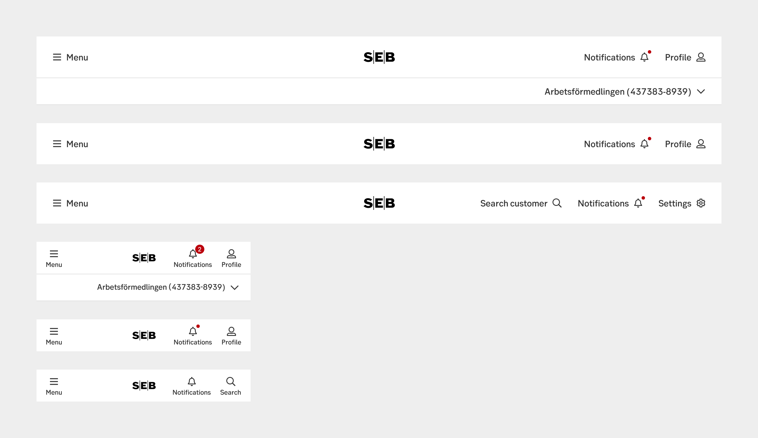 We also have an optional sub-bar that may be used for global functions that need to take up more horizontal space. This is uses for company selector for Business Arena.