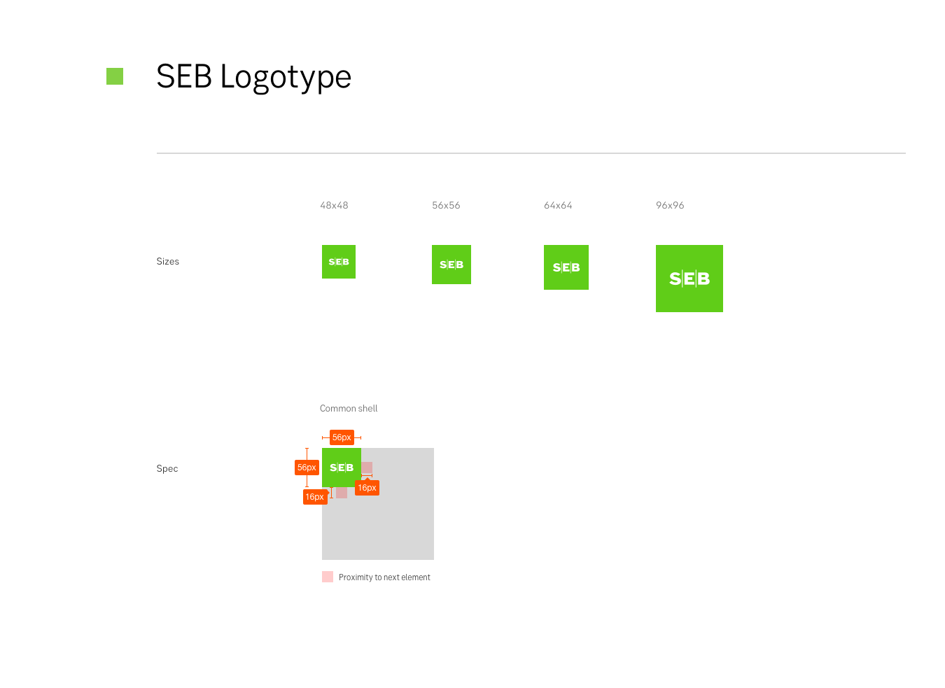 The size of the SEB logo should be a multiple of 16px (1 rem).